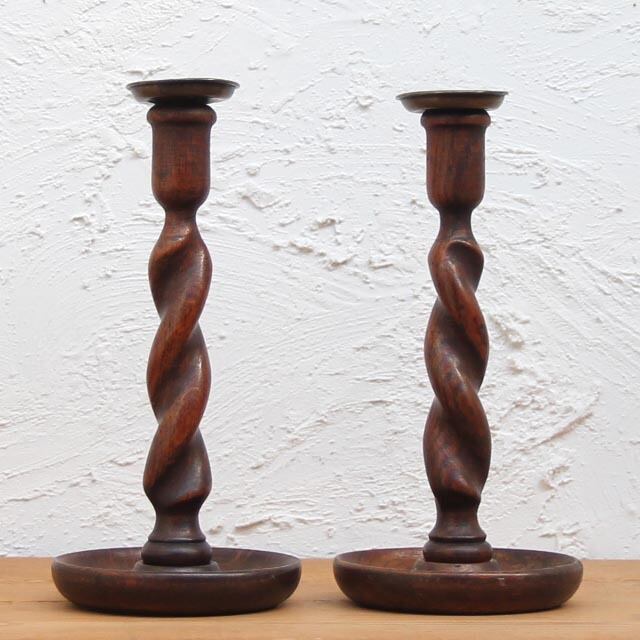 イギリスで買い付けてきたオーク材のキャンドルスタンドペア。